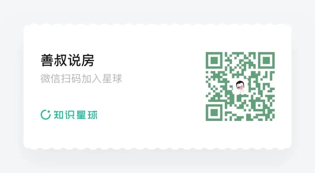 请大家关注“善叔说房”,进入知识星球发问,有问必答并送赠送价值10000元买房资金规划方案。